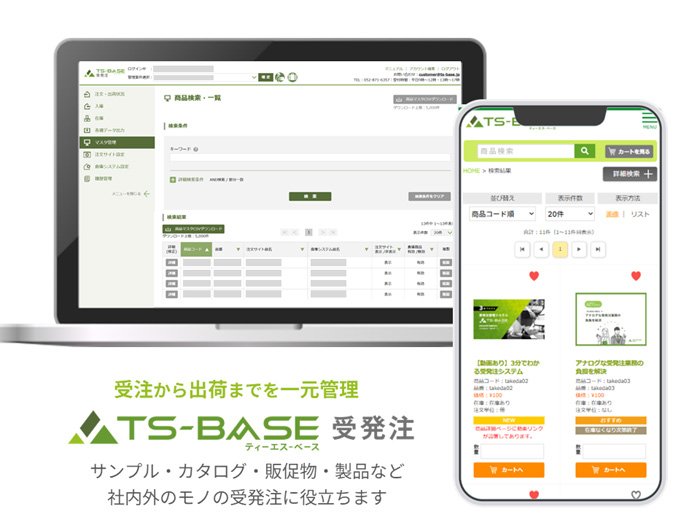 | 出展内容・PR本文 | 「TS-BASE 受発注」は、病院・施設や営業との間で発生する受注・出荷業務を一元化。製品サンプルの発送やカタログ管理など、利用シーンに合わせた機能を組み合わせてご利用いただけます。 |